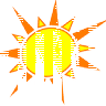 A line of teepees in a grassy meadow. Hills and a low sun in the background. |